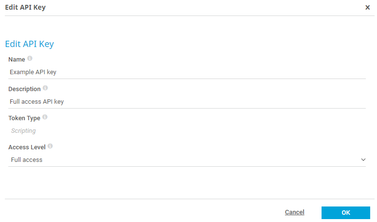 Click OK to save your settings, or click Cancel to close the dialog box without creating an API key.