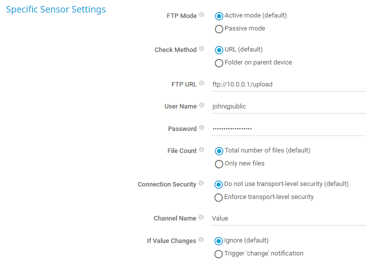 Enter the URL that this sensor checks. The URL can look like this: ftp://10.0.0.1/upload