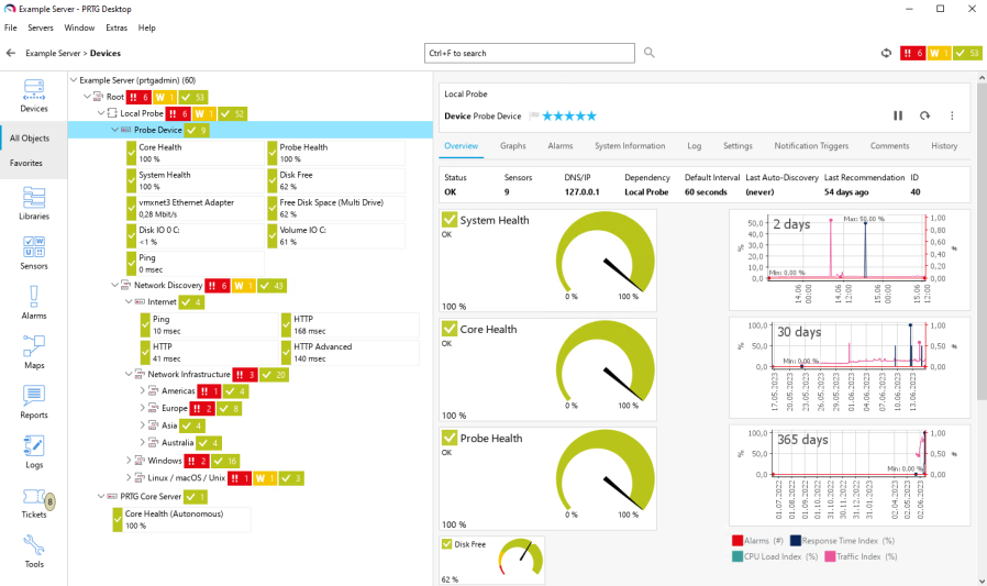 • Overview: View and edit all device tree objects in all of your PRTG core servers and PRTG Hosted Monitor instances.